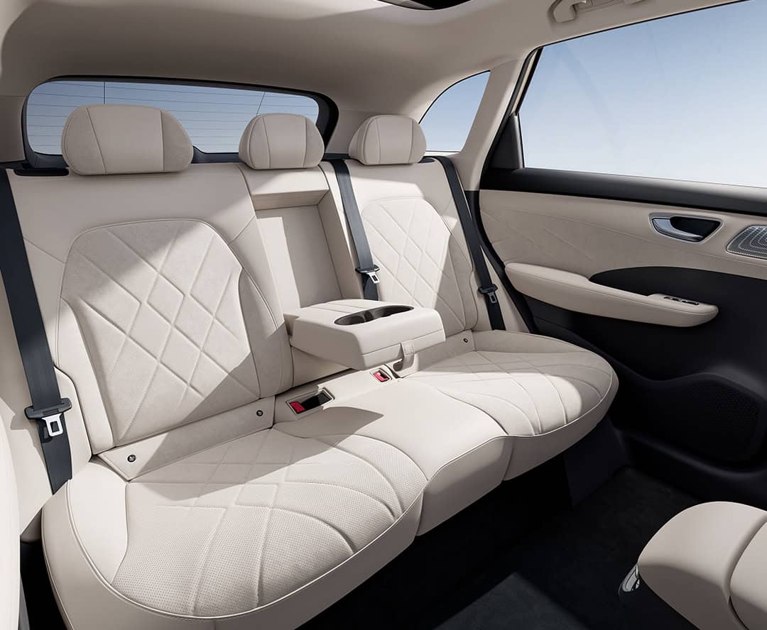 Den mellemstore elektriske familie-SUV er udstyret med intelligent teknologi og afsluttet med et elegant touch. De luksuriøse sæder i læder-look og ruskindseffekt ligger under et stort panorama glastag, der gør kabinen til et stilfuldt og rummeligt fristed.